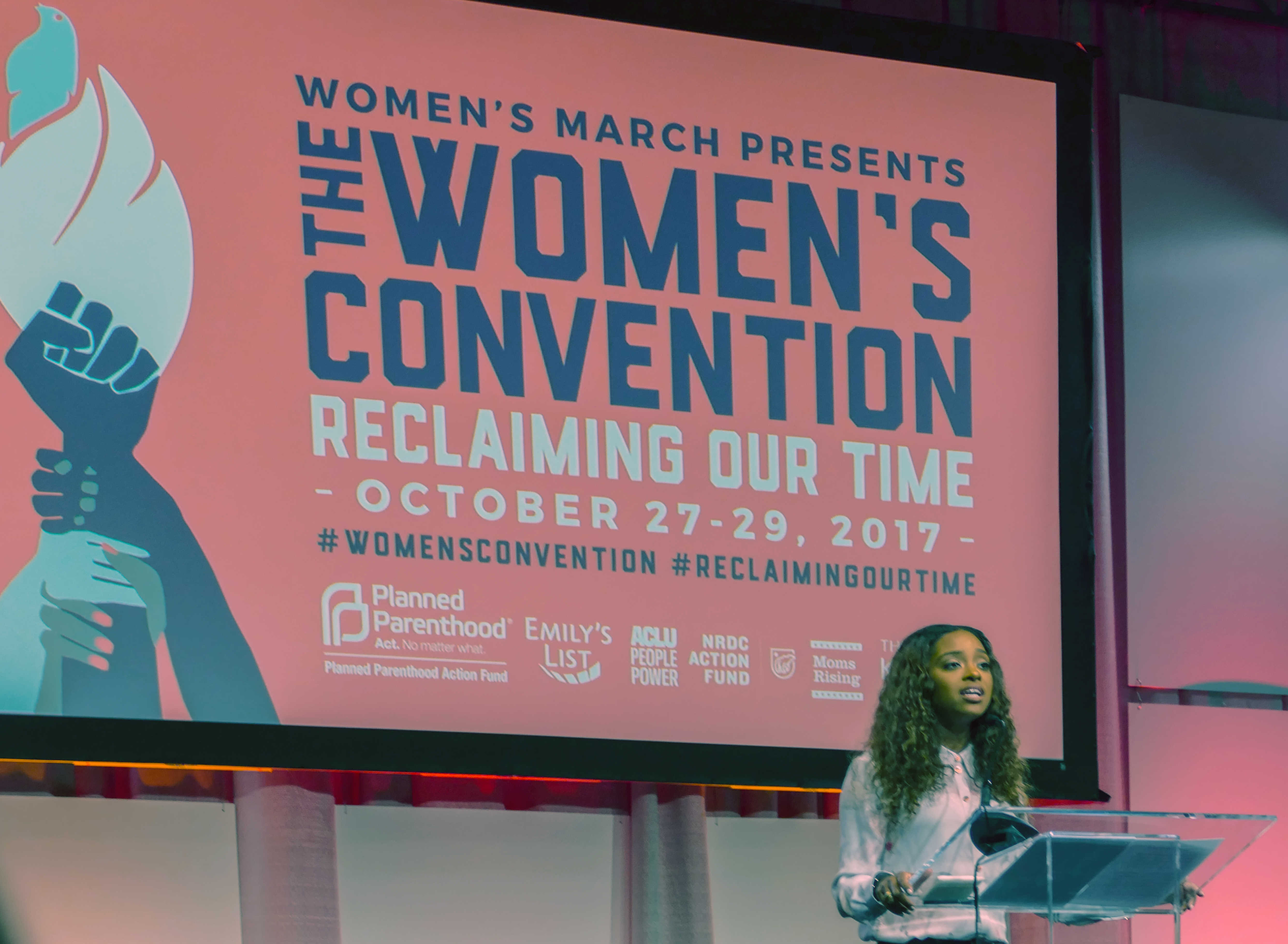 Tamika Mallory, co-president of the Women’s March Board, speaking at the opening session, “Reclaiming Our Time: Setting the Agenda Together.”